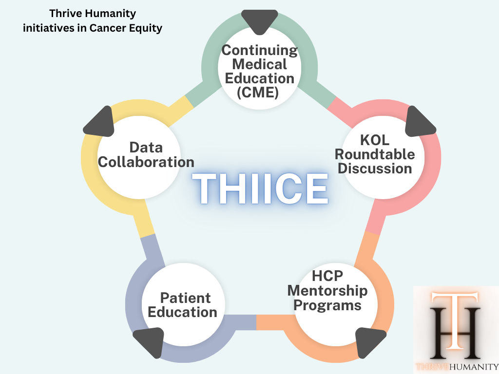 The Thrive Humanity Initiative in Cancer Equity (THIICE) is a national education and outreach program dedicated to closing the gaps in cancer care for underserved populations. Developed by Thrive Humanity, this initiative brings together oncologists, nurses, navigators, and community advocates to strengthen equity, cultural competence, and patient navigation in oncology practice. Through both live and online learning, THIICE transforms how clinicians and communities work together to achieve fair and compassionate cancer outcomes.