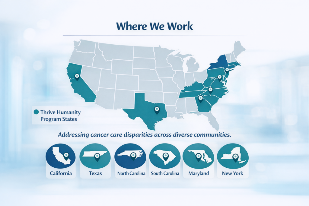 Thrive Humanity advances equitable access to cancer care through clinician education, patient navigation, and community engagement—delivering measurable impact across oncology care teams and underserved patient populations.